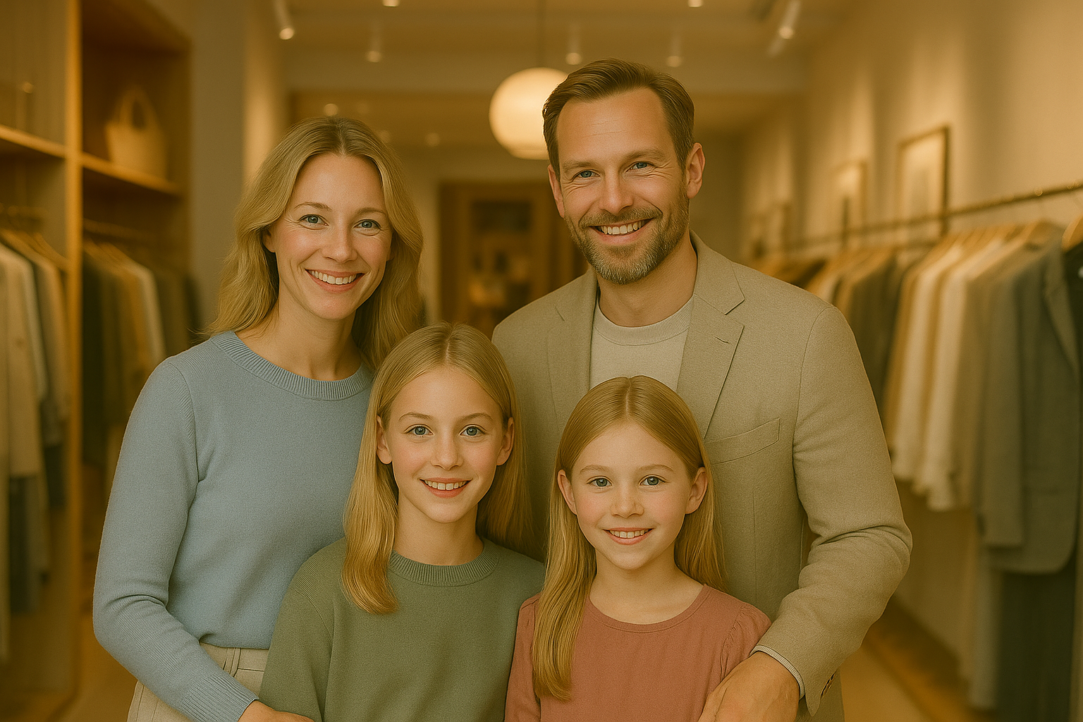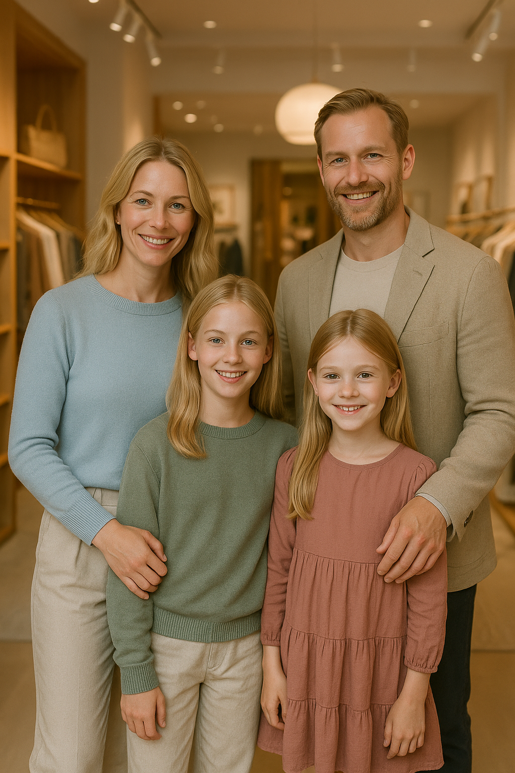 en butik född ur kärlek, familj och tidlös stil. Min man och jag började denna resa med en gemensam dröm, och nu har våra två döttrar – 12 och 5 år – vuxit upp tillsammans med butiken.